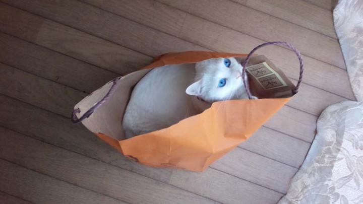 「ニャンニャン♪」(美味しそうな匂いがする紙袋だニャン♪)