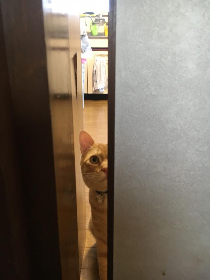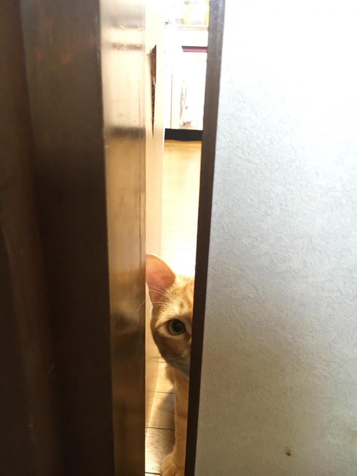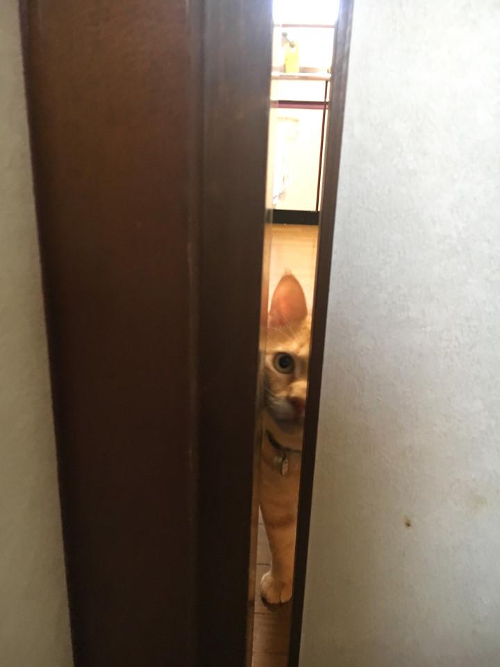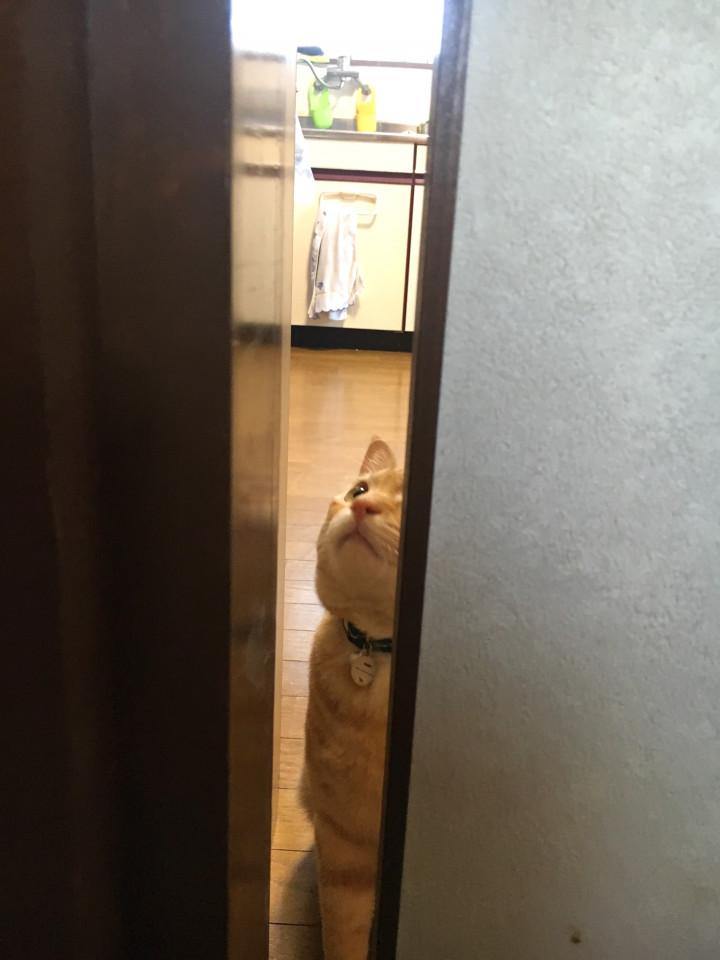 「とと」がどこかから来て、寝室の扉の前にいるのです。