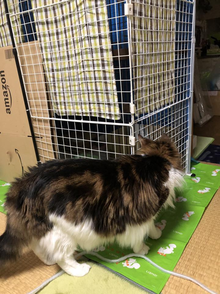 入れる前に、ハルがゲージに入ってチェック&リラックスしてた。