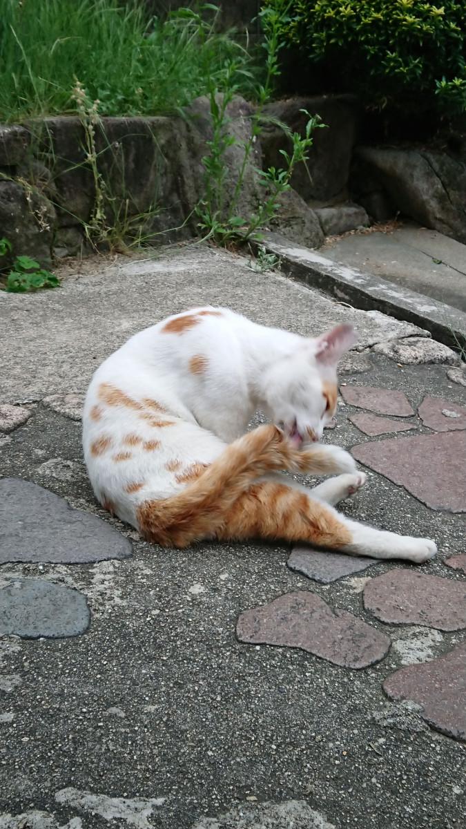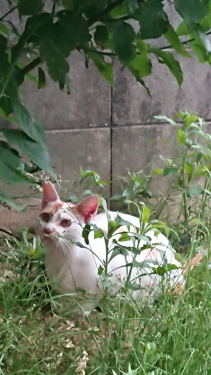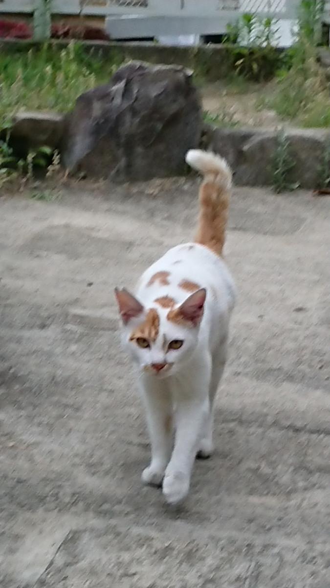 猫12号、今までは塀の上から私と猫3号達を見ていましたが、降りる場所を猫3号についていき、わかった様です。