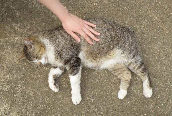 首輪はなかったけど、丸々太って人懐こい所を見ると飼い猫ちゃんのようです。