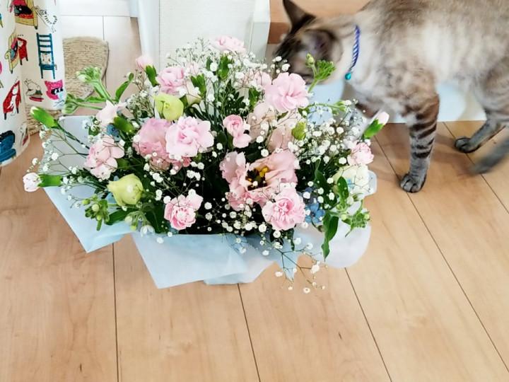 ちびにゃんにって、お花が届きました。