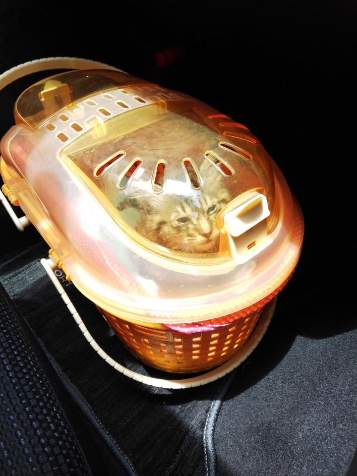 4匹共、引き離されたブチ子さん(母猫)が