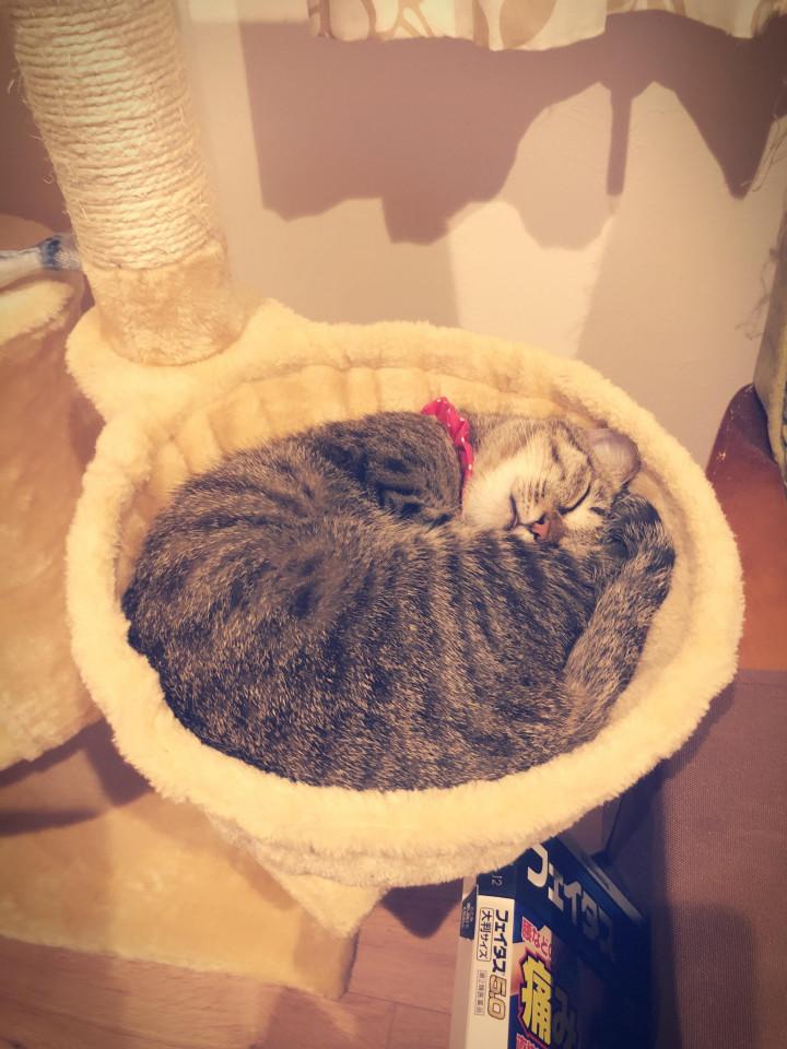 その後、起きると私達(めんどーで籍は入れてないけど夫っぽい人がいます)に数分間狂ったように(笑)甘え、タワーに戻り今度はタワーの鍋状の寝床へ。