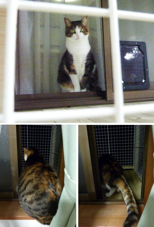 午後、逡巡したのちに左後ろ脚も専用ベランダに下ろす。