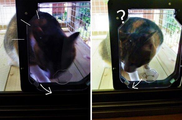 ちょっと猫ドアを開けて誘導しないとダメっぽい。