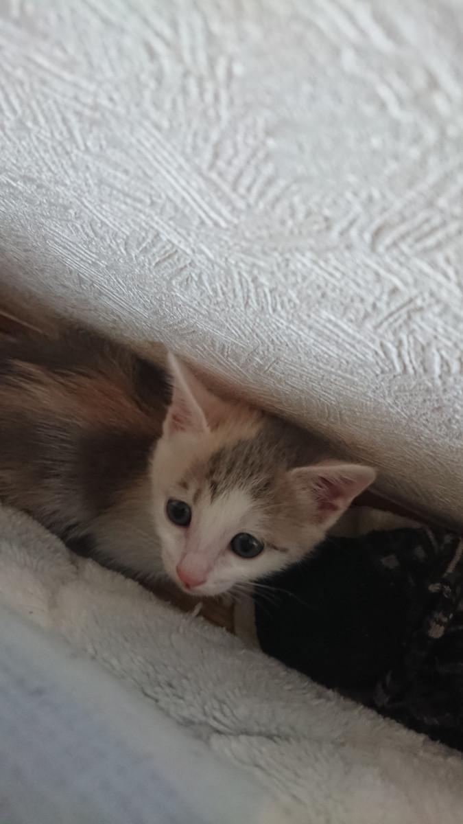 次は三女の琥珀、家に初めての白混じりの猫ちゃんで目がクリクリして可愛い❗慎重で