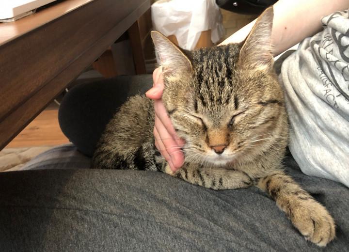 私、床掃除をしてからぽてを持ち上げ座椅子に座り、ぽてを膝に。そして今に至る。
