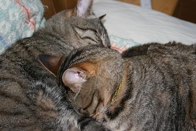 昨日の地震はかなり怖かったようで、二人ともずい分怯えていたせいか、 あんずが ゆずをかばっているように見えます。。。