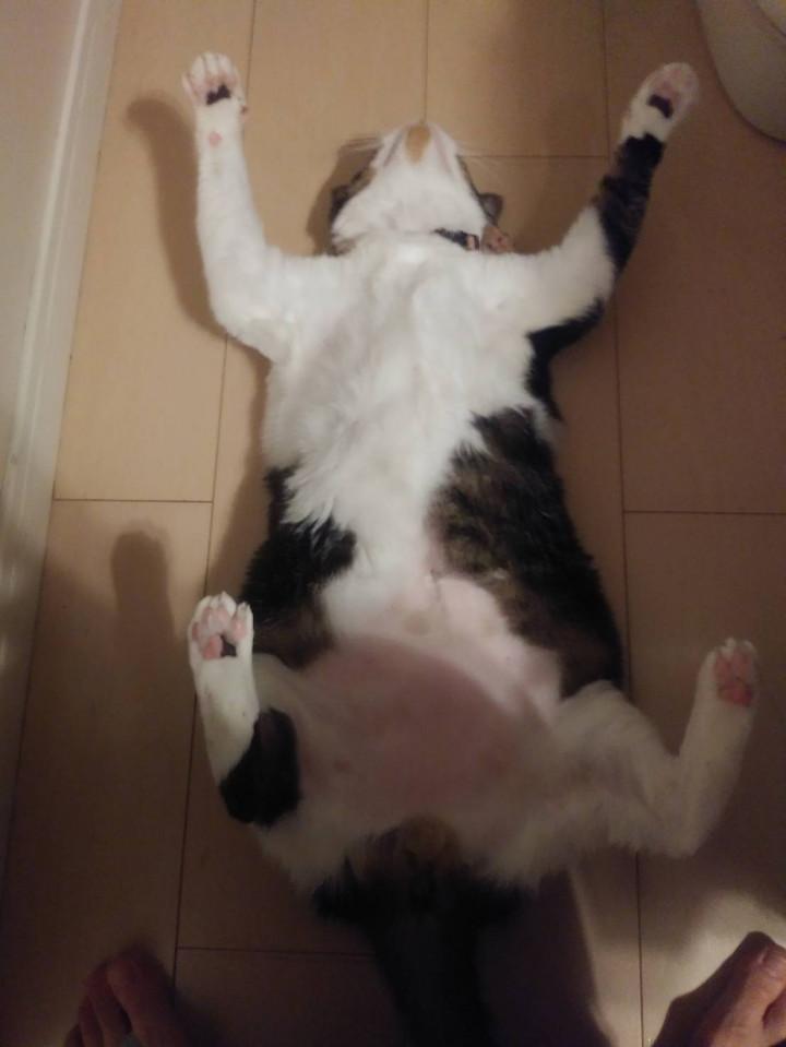 一番大きい肉球(てのひら)が黒なのが、かわいいでしょ。
