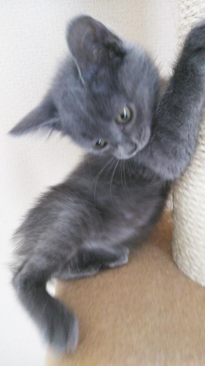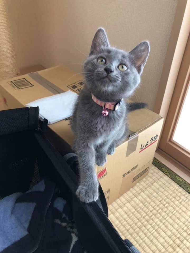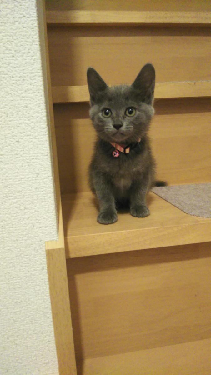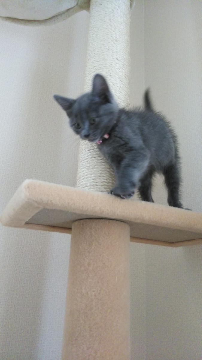 4月6日生まれ?の野良ちゃんの保護猫ちゃんです。うっすらトラ模様の入ったグレーの娘で、兄弟にはグレーと白黒のハチワレの子たちがいたもよう。