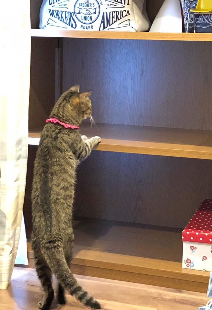 構ってほしくなったかな、また出たい? ナデナデすると、また「出たいな、でも高いな」というそぶりで鳴く。