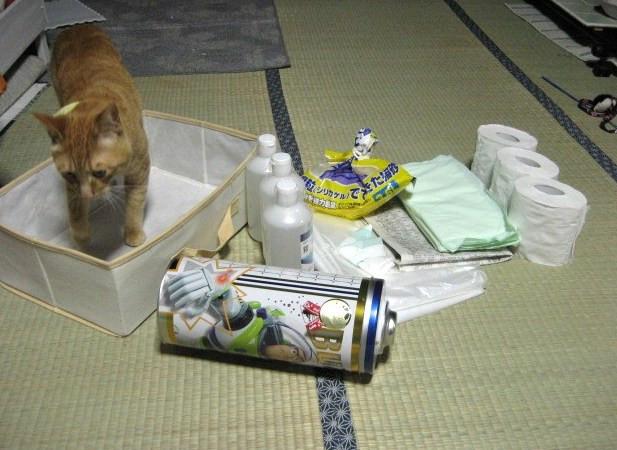 ①のインナーケースにビニール袋、新聞紙、ペットシーツを敷いて、その上にトイレ砂を入れて、使います。