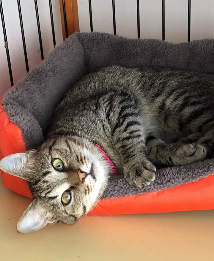 探索と甘えとごはん、トイレ…一通りエンジョイすると、昼2時半過ぎには自らケージのベッドに。