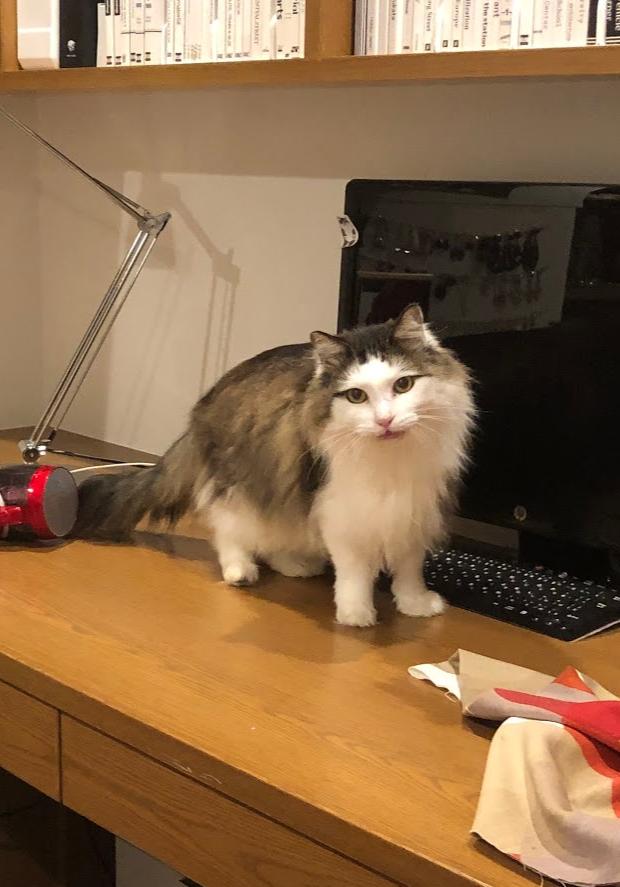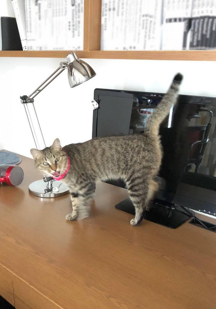 アクティブなぽて、この家に来て以来もう何度か机に登ってる。