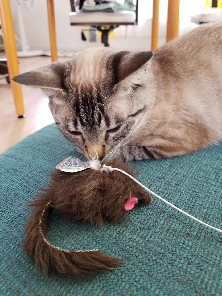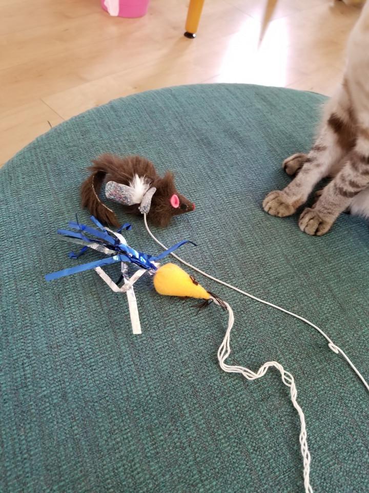 ネズミにキラキラの羽をつけて、遊んでみました。