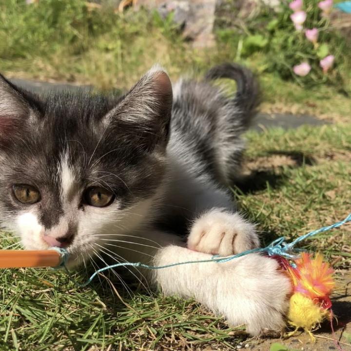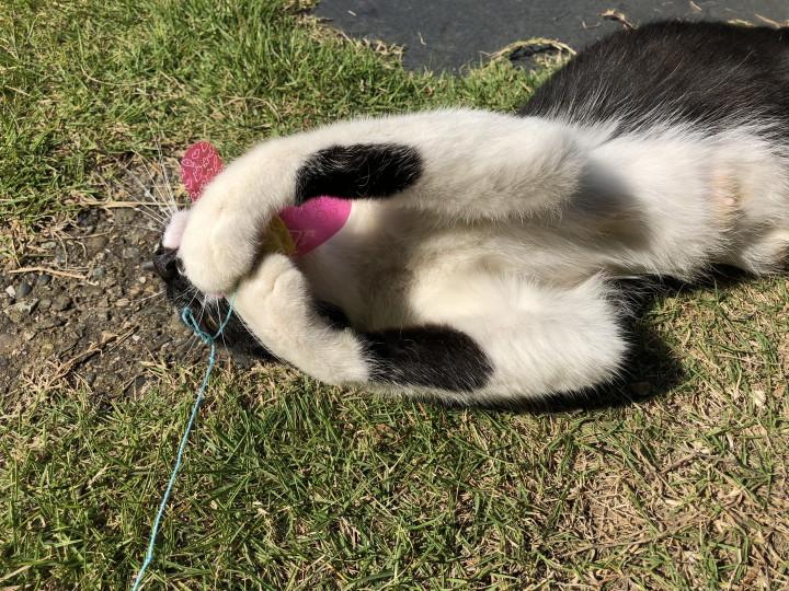 これでは遊びたい盛りのはんはなが不憫なので、うちの猫のお下がりだけど、おもちゃのかしゃぶんを振ってみました。