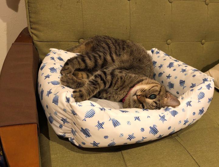 ぽて、ソファにあるのは今日届いた夏用ベッドだよ。