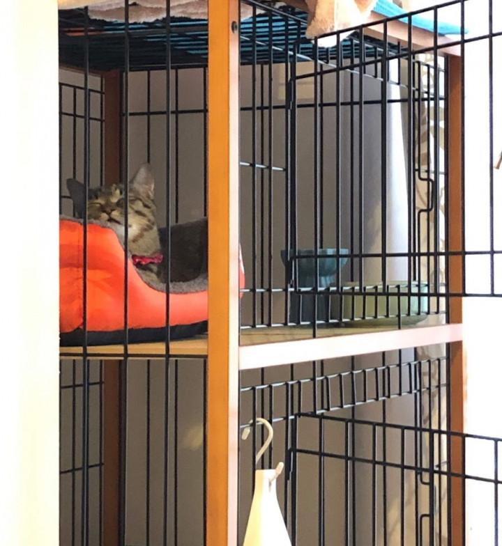 11時半に自らケージのベッドへ。ちょっと早いけどお昼の熟睡モードだね。