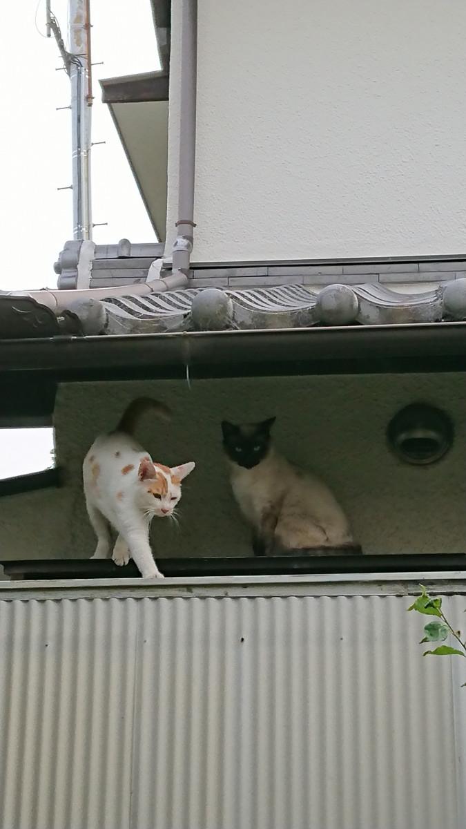 毎日猫1号達がお庭に降りると、猫13号も塀の上からじっと見ています。