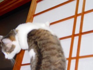 【障子に飛びついた瞬間。障子紙はズタボロになった為、メッシュのに強化】