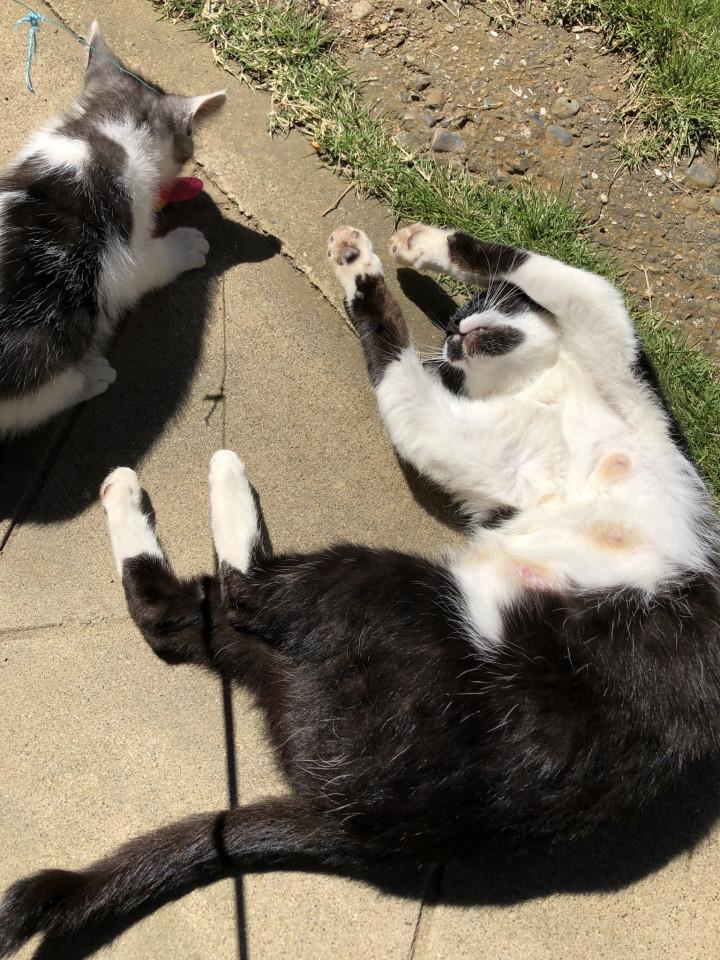 獲物を咥えて来ては、ごろにゃごろにゃと子猫たちを呼び、狩の訓練をさせていました。