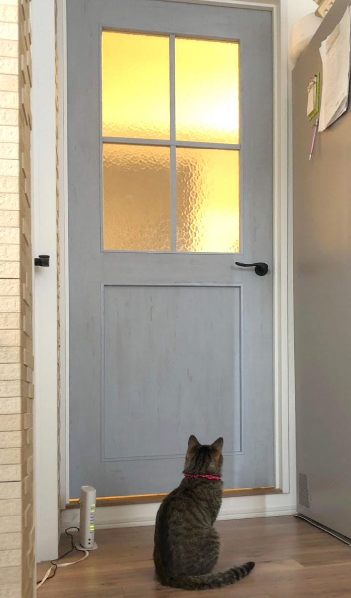 寝るのかと思ったけど、リビングの扉の開閉に反応して出ていく。
