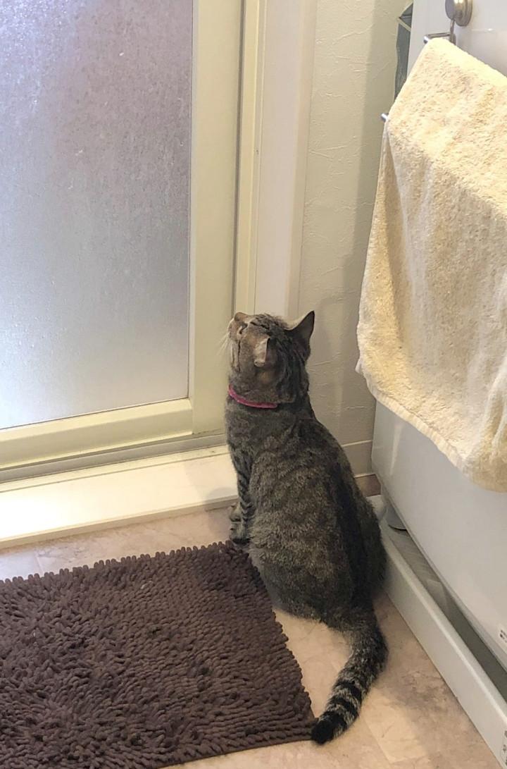 彼が頭を洗い体を洗い、すすぐくらいまではずっと扉の前ですりガラス(正確にはガラスじゃないが)の向こうの水音と動く人影を興味深げに見ていた。(そしてそれを見守る私)