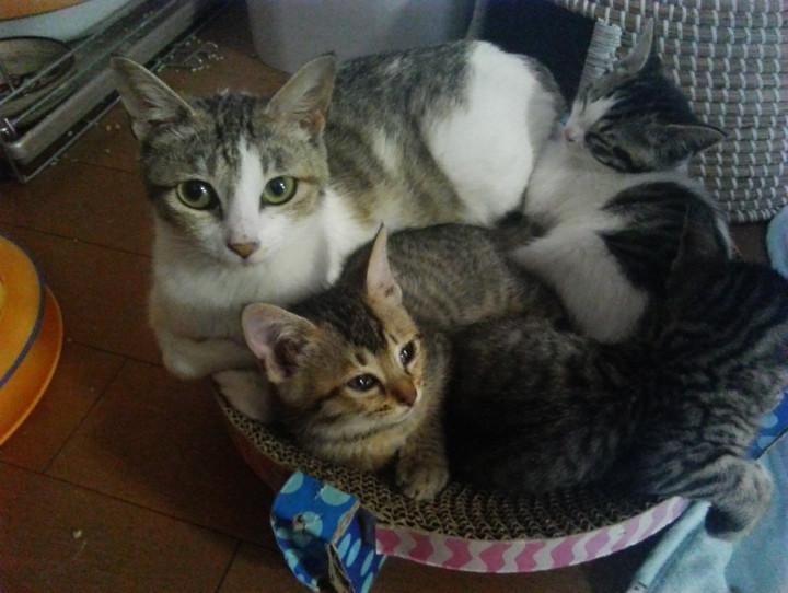 少しホッとした所だったのでしたがまたあんこが裏口のところでにゃーにゃー泣いてきました御飯あげるねと用意するとびっくり2階の裏口のすぐ前の納戸の下のすき間から赤ちゃん達が出たり入ったり