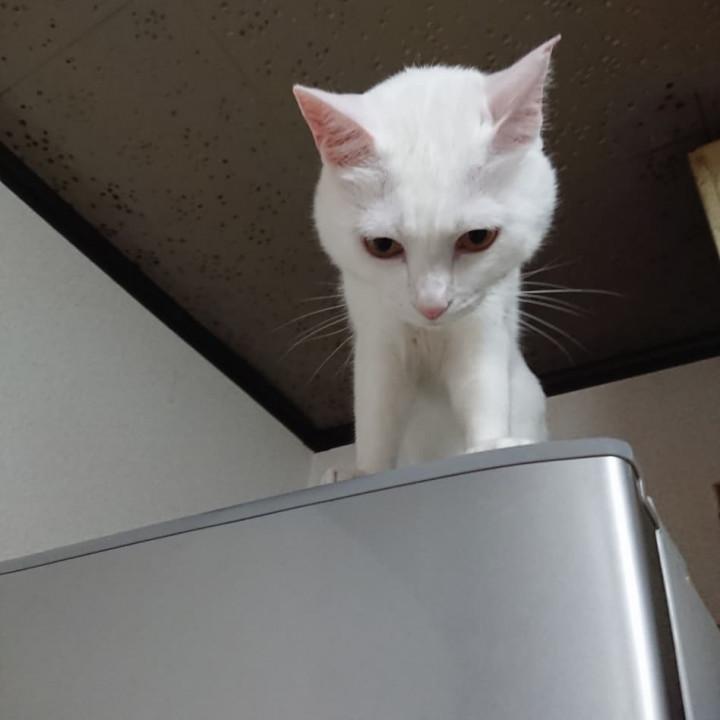 ミルクは冷蔵庫の上から降りて来ません