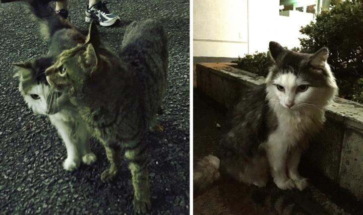きっとこの二匹が懐っこかったのは、ゴハンをあげる人がいつもこの深夜の時間帯に来てたから、ゴハンを貰えると思って寄ってきてたのだと思います。