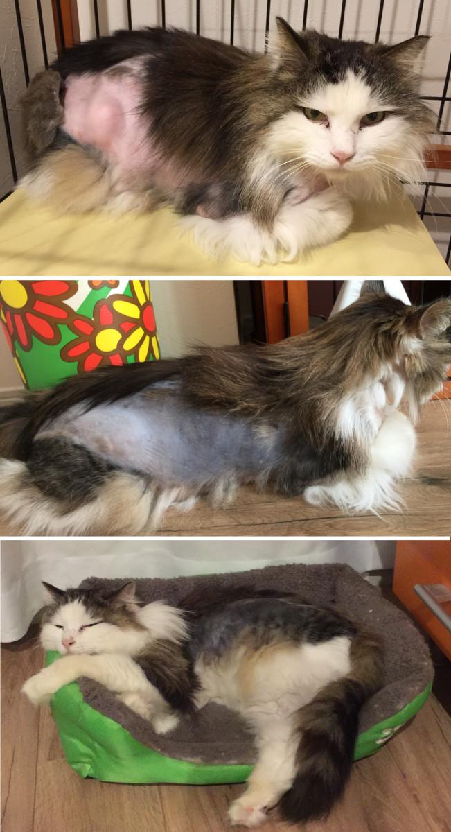 インパクトある見た目ですが、すぐに新しい毛がゆっくり生えてきて、毎日ブラッシングのおかげで毛玉になることもなく(時々脇とかに小さいのが出来たものの)ふわふわになりました。