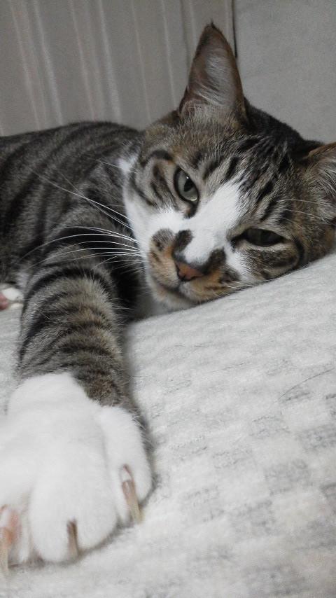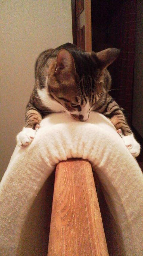 夜ごはんにシーバとかつお節ご飯を食べて満足そうでした。