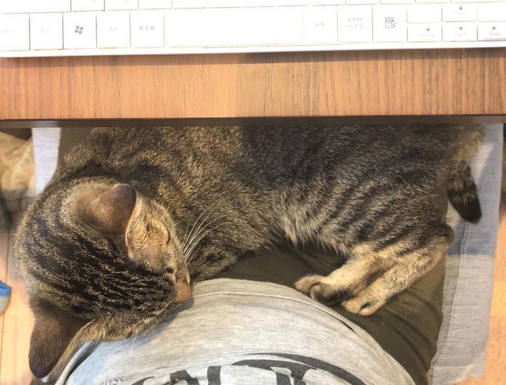 今までは膝に乗る→ナデナデスリスリ大興奮という感じで作業中断タイムだったけど、ただただ寝てくれることも増えて来た。