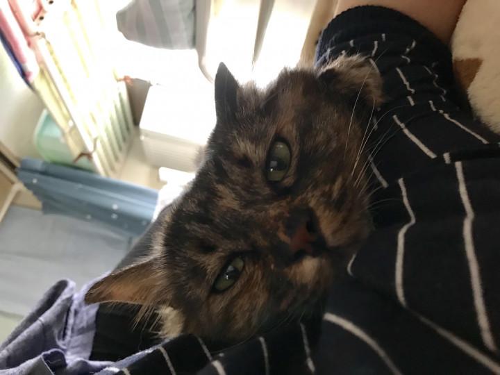 寝る時、隣にやってきて、脇の下辺りに収まってゴロゴロ(*´﹃`*)甘えん坊め〜、大好き♡