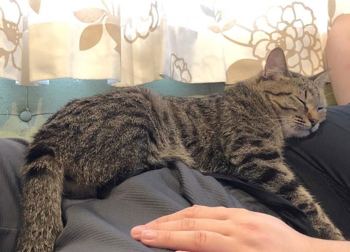 膝の上で甘えたり、ウトウトしてみたり、グルーミングしてみたり。