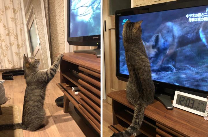 その後、ちょこちょこご飯を食べたり水飲んだりテレビ観たり窓際に行ったり(曇り空だけど)。