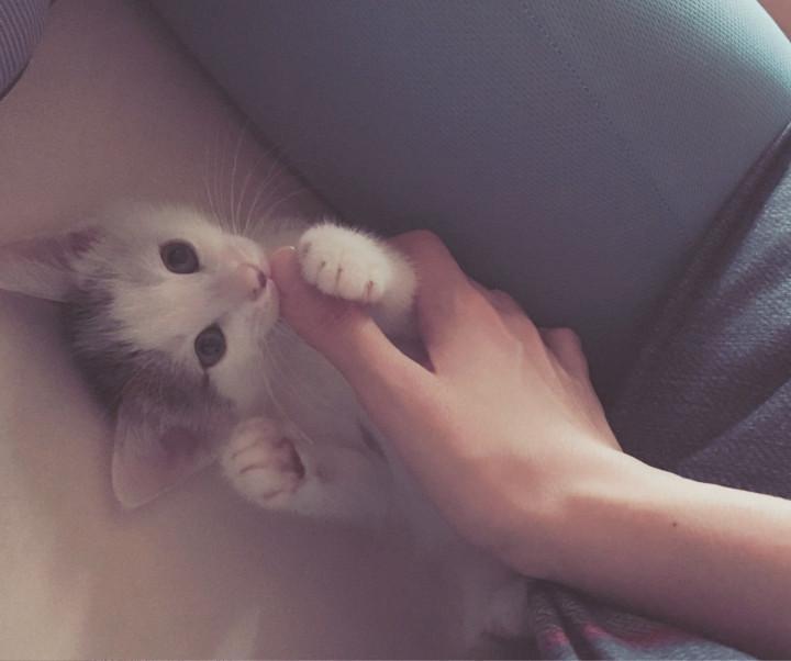 仰向けで、手を引き寄せてはハムハムしてきます😋