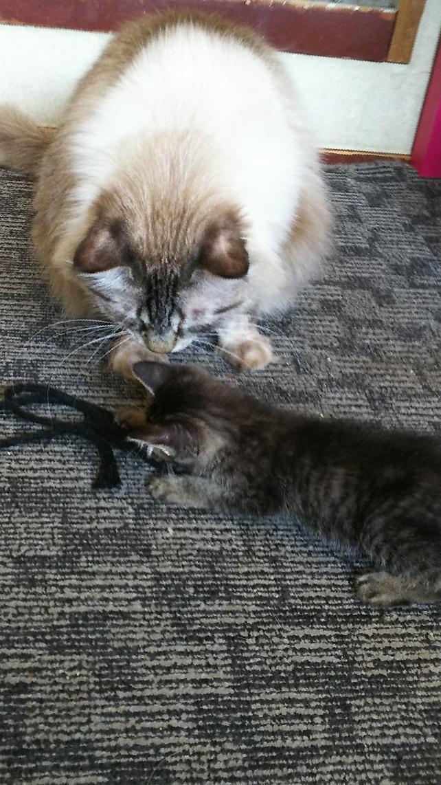 紐はこんなんして遊ぶんだよ。微笑ましい光景に..ミワキチは..メロンメロンです。