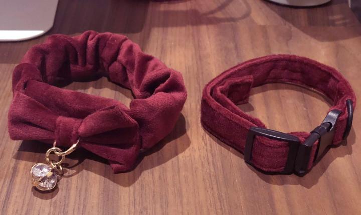 私はその間、Amazonから届いたばかりのぽての新しい首輪をぽて用に調節してた。