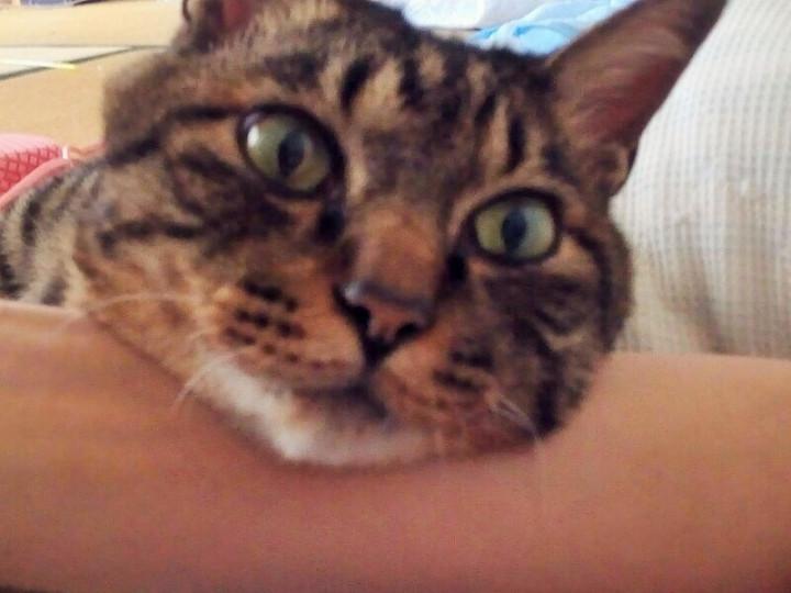 そーっと腕を差し出すと、彼のお得意の「顔のっけ」が!!