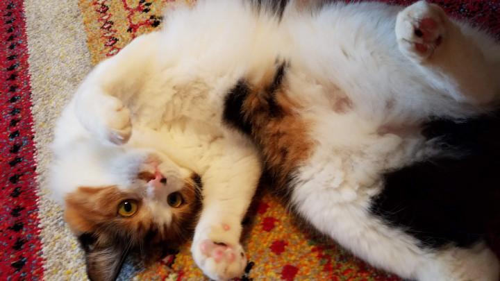 ダンナさんいわく、「ケージに入れられたから嫌がらせだ」だそうです(ポンはケージが大嫌い)。