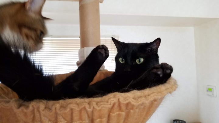 家に帰ってからニャンズのゴハン、トイレを一人でやります。