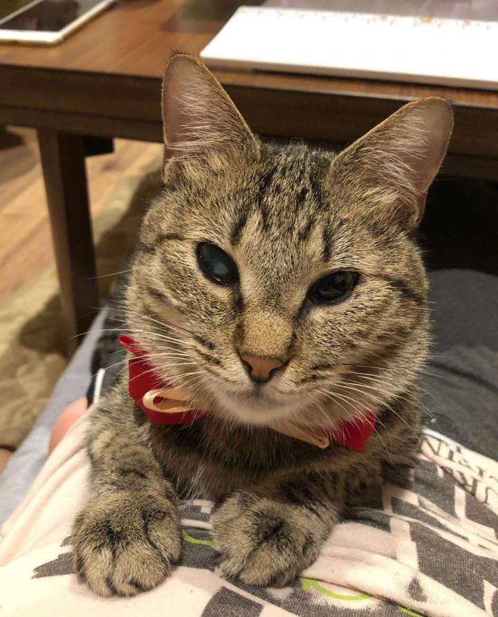 作業終わって昼12時40分頃、膝に乗ってきて、ナデナデしたりグルーミングしたりウトウトしたりで2:42(細か!)まで乗っててくれた♥