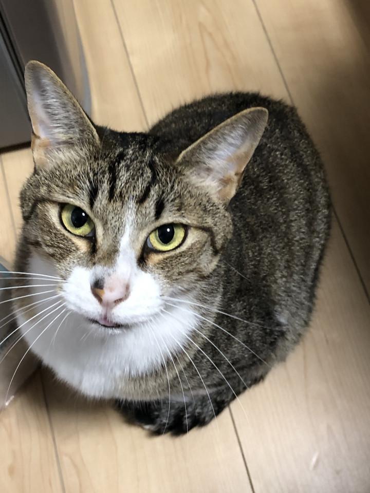 子猫の時にひいた風邪から目に肉芽が出来てしまい、甘やかして育ててしまったようで、兄弟猫のムタ(キジシロ、オス3歳)