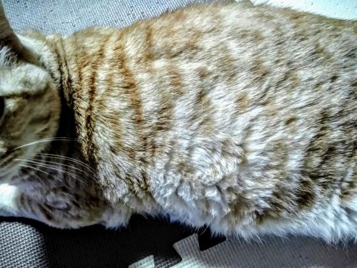 姫の左側はしま模様。右側はちょっと斑点っぽい。