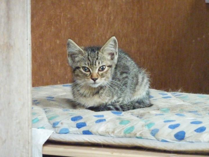 適当な段ボールに入れて撫で撫でしつつ夫を呼んでみた。