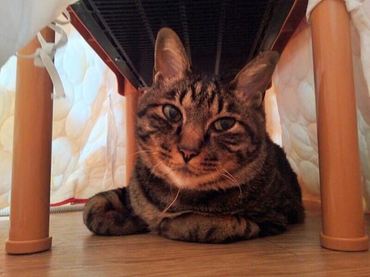 猫こたつにひそむグル…片付けたいのに隠れ家になってるから