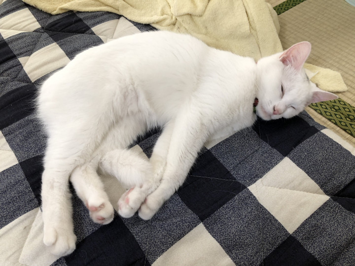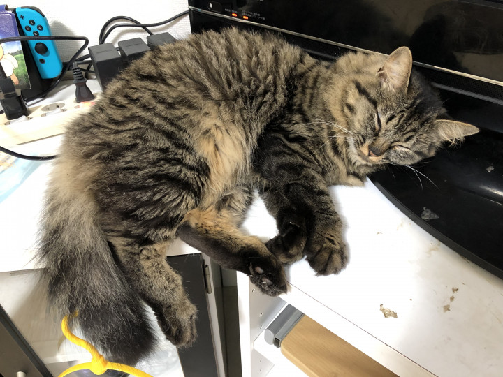 シマ子はテレビ台の上でよく寝るので夢見てるのかピクピク動いてテレビに集中できなくなる感じです笑( ̄▽ ̄;)あは