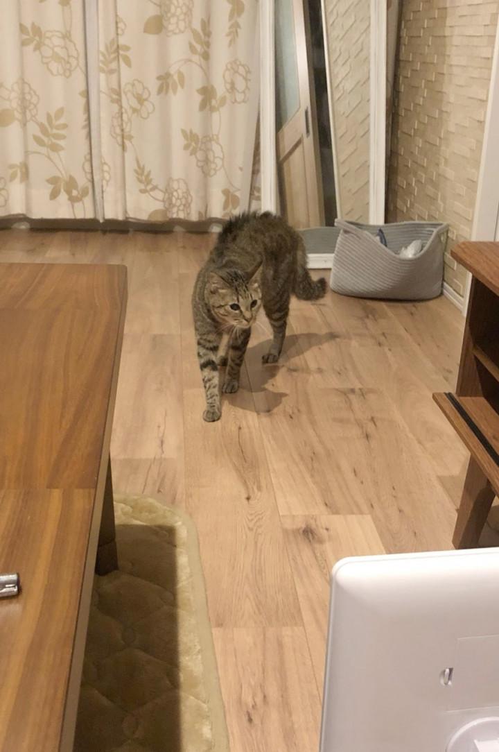 ぽてが深夜に大運動会してて、階下への音の響きが気になる私、ぽてのダッシュを減速してもらうため、手近にあった鏡を通行止め代わりに置いた所……ぽてが動きを止め、静かに逆毛を!